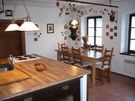 | Pokoje a vybavení | Chalupa je zařízena v krkonošském stylu a pro vaše maximální pohodlí. Celková obytná plocha 95 m2 zahrnuje: * kuchyň * obývací kout * jídelnu * 2 ložnice po 4 lůžkách * koupelnu s WC a sprchou Vašemu komfortu přispěje vytápění elektrickými přímotopy, barevná TV, satelit a možnost grilování. K nastolení romantické pohody můžete využít topení v kachlových kamnech. |